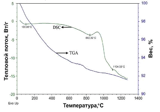 связано с выделением абсорбированной воды, в интервале 280-600 0С с реакциями