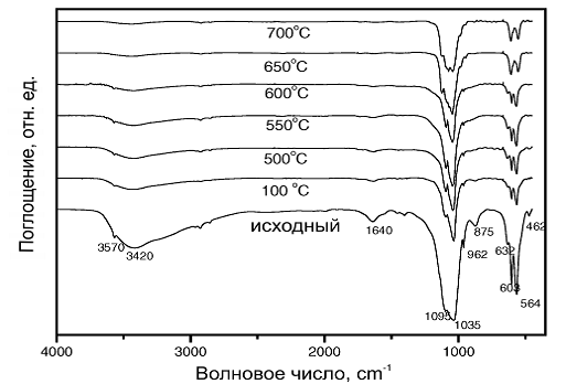 Рис. 21. ИК-спектры образцов КДГА, отожженных при различной температуре