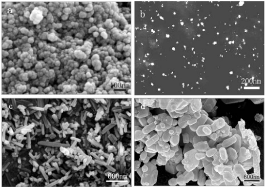 Рис. 17. Микроволновый синтез: Р=350W, t=4мин (a); Р=500W, t=4мин (b); Р=700W t=4мин (c, d)