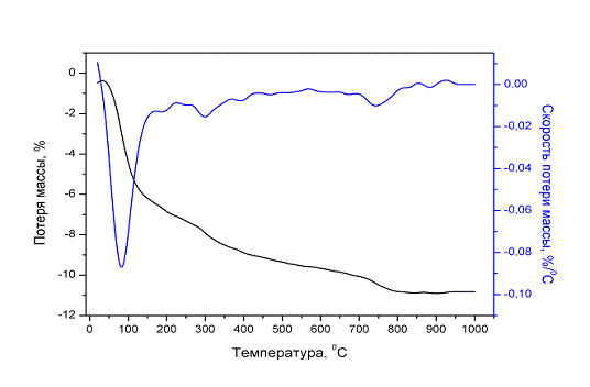 показали наличие потери массы в трёх температурных интервалах: 20-280 0С,