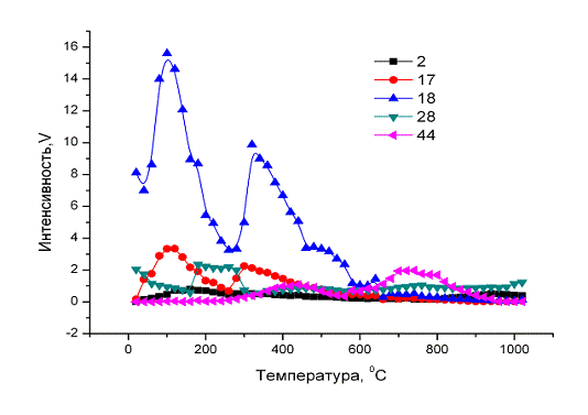 газ. Предыдущие исследования показали, что газовыделение в интервале 20-280 0С