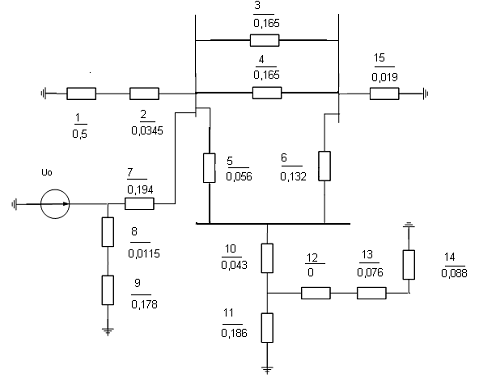 ведем в относительных единицах, для того чтобы все ЭДС и сопротивления схемы