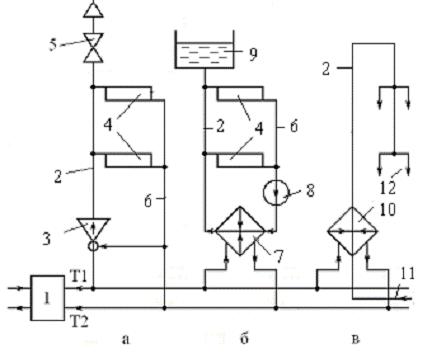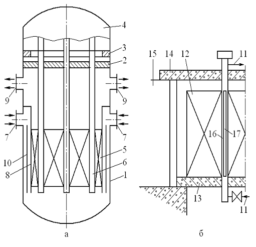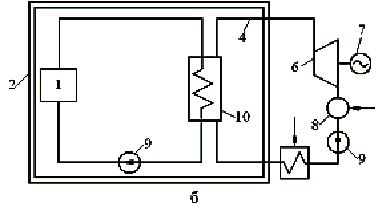 нагрева воды в теплообменниках 8 и образования пара. Вода подается насосом 9