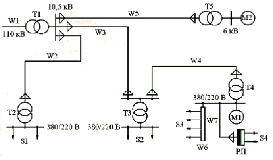 генераторы электроэнергии; Т - трансформаторы; Р - электрические нагрузки;