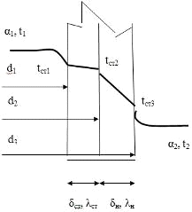 слоя теплоизоляции. Показать примерный график изменения температуры по толщине