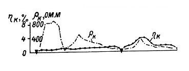 складывается из вычисления параметров ŋк и ρк, построения графиков этих величин, выделения аномалий