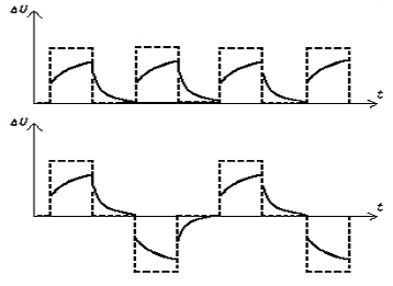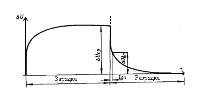 измерительными электродами, а затем рост напряжения, замедляющийся с течением