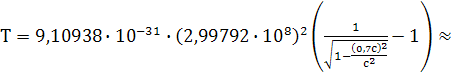 Найти импульс, полную и кинетическую энергию электрона, движущего со