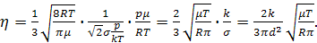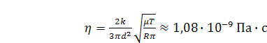 Коэффициент внутреннего трения (или динамическая вязкость) газа