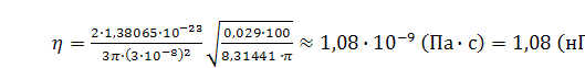 Подставляя числовые параметры, величину среднего диаметра молекул воздуха