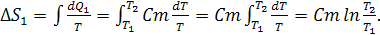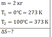 удельная теплоёмкость воды. Следовательно, изменение энтропии