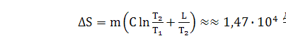 откуда находим суммарное изменение энтропии воды во всём процессе: