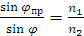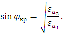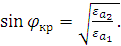 падения, при котором будет отсутствовать преломленная волна, мы получили, что