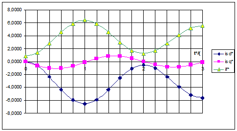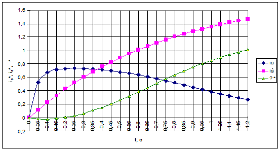 Рисунок 10. Графики iв*= iв*(t), ia*= iа*(t), w*= w*(t) при прямом