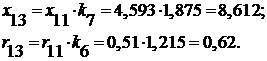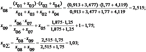 суммарные величины в месте несимметрии