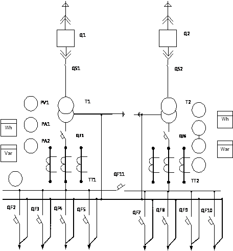 является централизованная компенсация, то есть установка конденсаторов на шины
