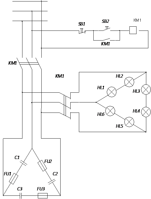 6 - Схема присоединения конденсаторов к шинам 0,4 кВ.