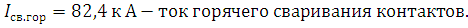Ток горячего сваривания определим по формуле: