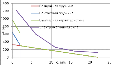 Рис. 13. Согласование характеристик пружин и электромагнита