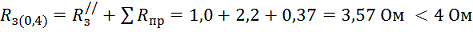 защитного заземления наиболее удаленного приемника 0,4 кВ: