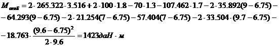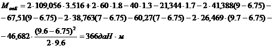 момент относительно пяты консоли для переходной опоры в этом режиме: