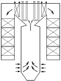пылевоздушной смеси и вторичного воздуха, соответственно,