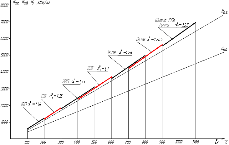 объемы и энтальпии продуктов сгорания. В результате расчета теплового баланса