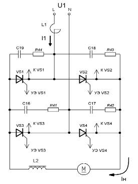 В данной схеме работает в каждый момент времени попарно VS1 и VS4 в положительные полупериоды, VS2 и VS3 в