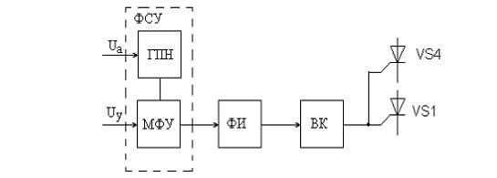 отрицательные. СУ вентилями должна формировать импульсы VS1 и VS2 в положительные полупериоды. Когда тиристоры закрыты, то к
