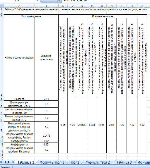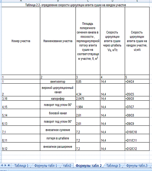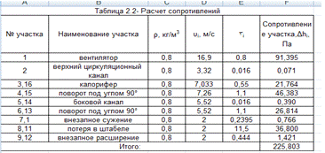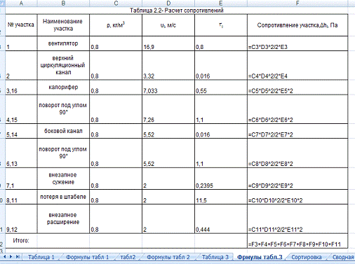 Организовать аэродинамический расчет камеры в электронных таблицах