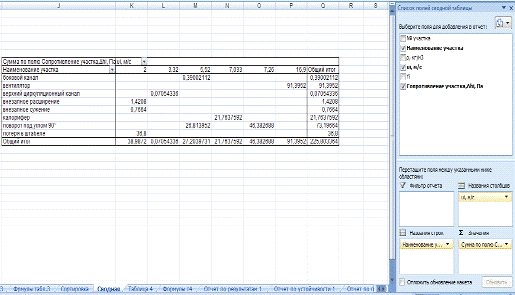 Рисунок 3.11 - Интерфейс программы Excel (сводная таблица)