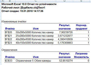 количество камер. Результаты выполненной оптимизационной задачи в Excel