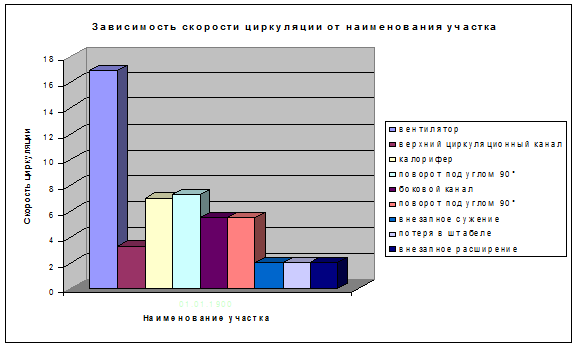Рисунок 5.3 - Зависимость скорости циркуляции от наименования участка
