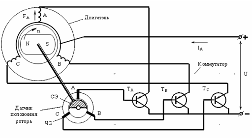 двигателем постоянного тока, питающимся от трехфазного мостового выпрямителя.
