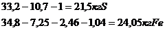 + FeS + 5SiO2 = 5(2FeO×SiO2) + SO2.