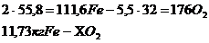 5SiO2 = 5(2FeO×SiO2) и восстановления магнетита 3Fe3O4