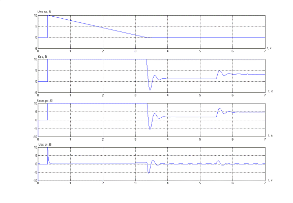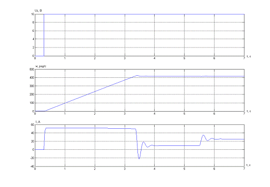) Смоделируем переходные процессы для случая без задатчика интенсивности.