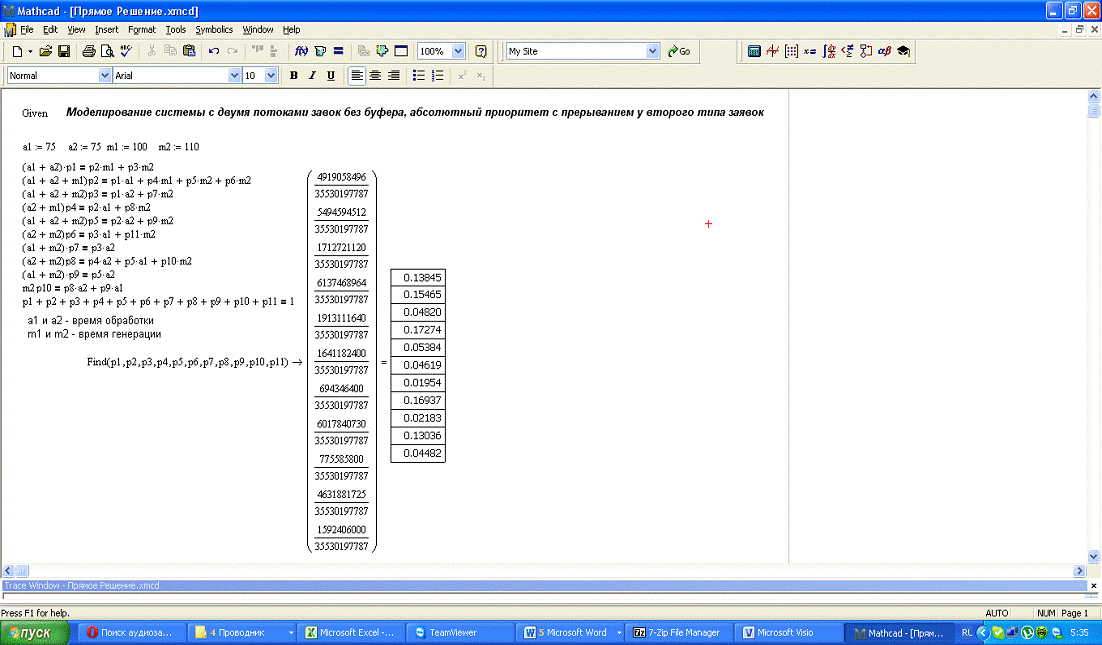 подставления коэффициентов поступления и обработки заявок к неизвестным