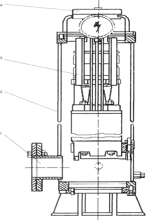 2-корпус, 3-электронасосный агрегат типа ЭЦВ, 4- напорный патрубок.