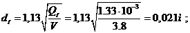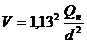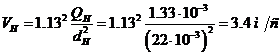 скорость потока жидкости в напорном трубопроводе, [м/с].