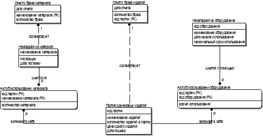 «Производство изделий», соответствующая модель данных, созданная база данных в
