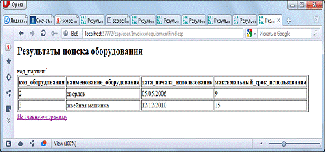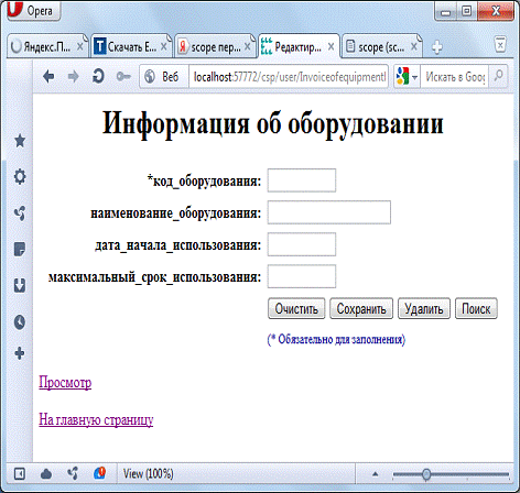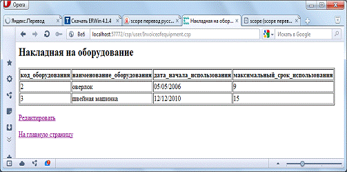 Рисунок Г.6 - Web-страница Invoiceofequipment.csp