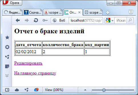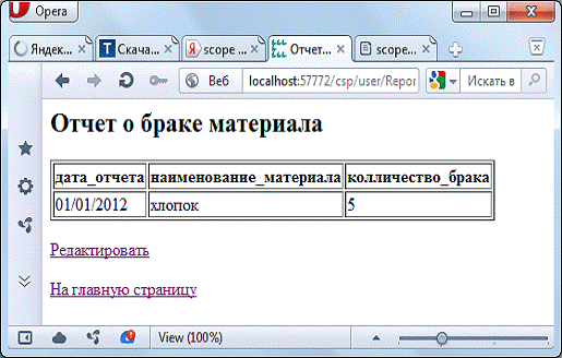 Рисунок Г.10 - Web-страница Reportofdefectiveproducts.csp