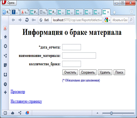 Рисунок Г.8 - Web-страница Reportofdefectivematerials.csp
