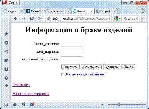 Рисунок Г.11 - Web-страница ReportofdefectiveproductsEdit.csp