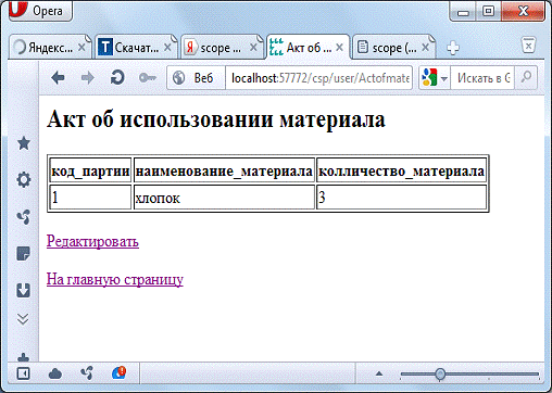 Рисунок Г.12 - Web-страница Actofmaterialuse.csp