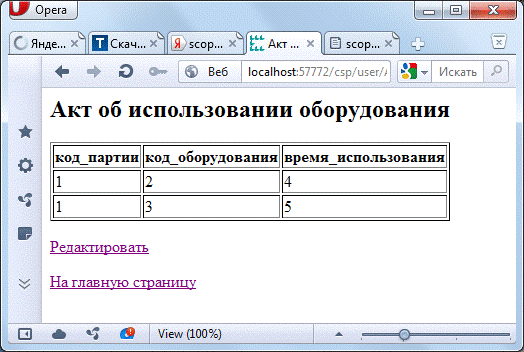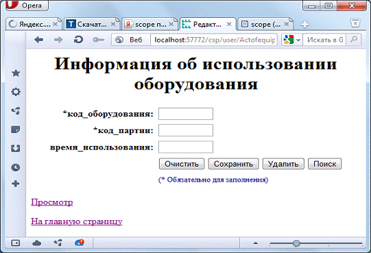 Рисунок Г.14 - Web-страница Actofequipmentuse.csp