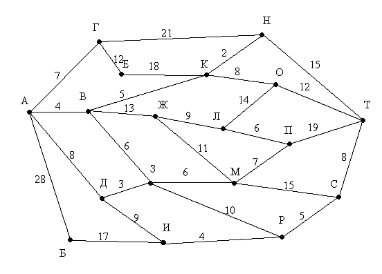 пункты А и Т, необходимо найти минимальное расстояние между ними. Имеется 2