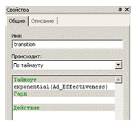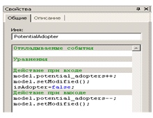 состояние Adopter. В окне свойства, задаем свойства перехода: переход должен