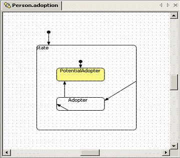 щелчком мыши по элементу adoption в окне проект. Нарисуем следующий стрейтчарт
